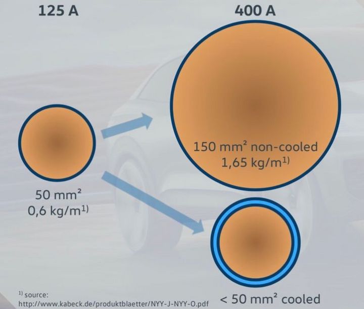所以要想用大功率充電,也就以下幾個辦法了:一是進(jìn)步電壓,堅持電流不添加,可是這個只能在必定的范圍內(nèi)做,并且牽涉到汽車渠道的嚴(yán)峻修改,一起還有許多安全隱患。二是選用大電纜,讓一個機(jī)器人或許機(jī)械設(shè)備來幫你抬電纜,這個辦法的缺陷不必多說了,貴或許笨。第三,就是今日的主題,選用冷卻的辦法來運(yùn)用小截面電纜來完成充電。好了,扯了半響的初中物理,好多人煩了吧,下面來點(diǎn)干貨。