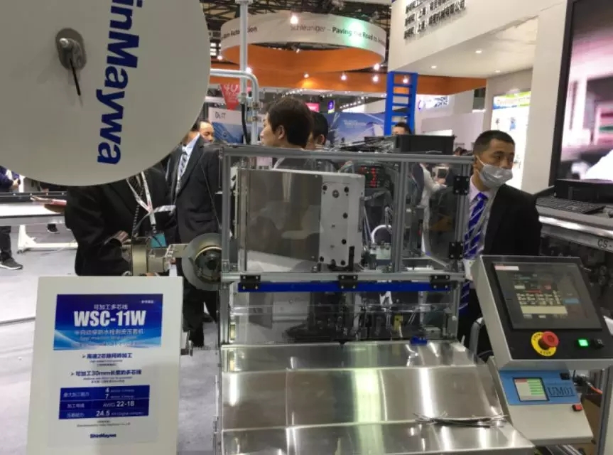 新明和展現(xiàn)了THR202C,作為對進行了測長/堵截的電線的一端進行沾錫加工、對另一端進行端子壓接加工的專用機,是為民生用品和車載設(shè)備商場開發(fā)的新機型,搭載了新開發(fā)的采用旋轉(zhuǎn)式扭線結(jié)構(gòu)的"扭線沾錫單元",大幅進步了處理才能和沾錫的加工質(zhì)量。此外,還有經(jīng)過縮短了更換時刻進步出產(chǎn)功能的TRD510WPSA的穿防水栓式打端子機,可加工多芯線的WSC-11W半主動穿防水栓剝皮壓著機等。